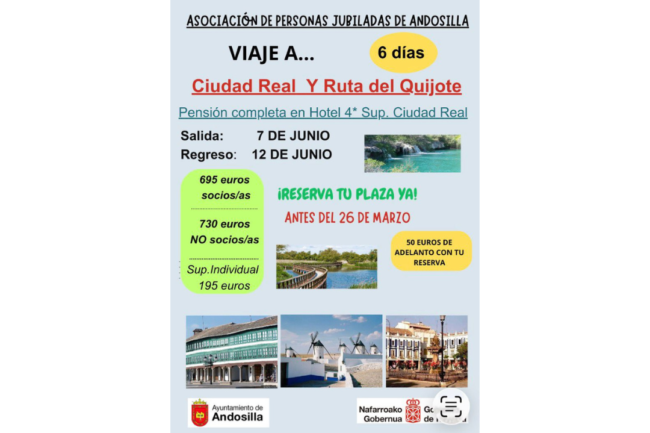 Asociación de Personas Jubiladas de Andosilla: Viaje a Ciudad Real y Ruta de El Quijote ActividadesBy Carlos Resamarzo 11, 2026