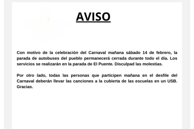 Aviso Carnavales 2026