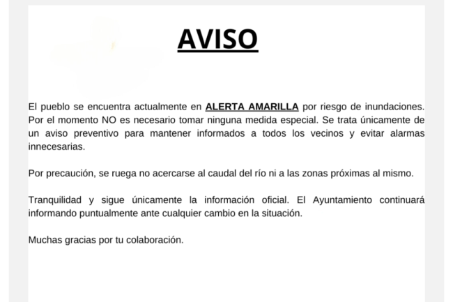 Aviso alerta amarilla por riesgo de inundaciones
