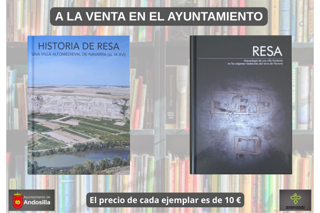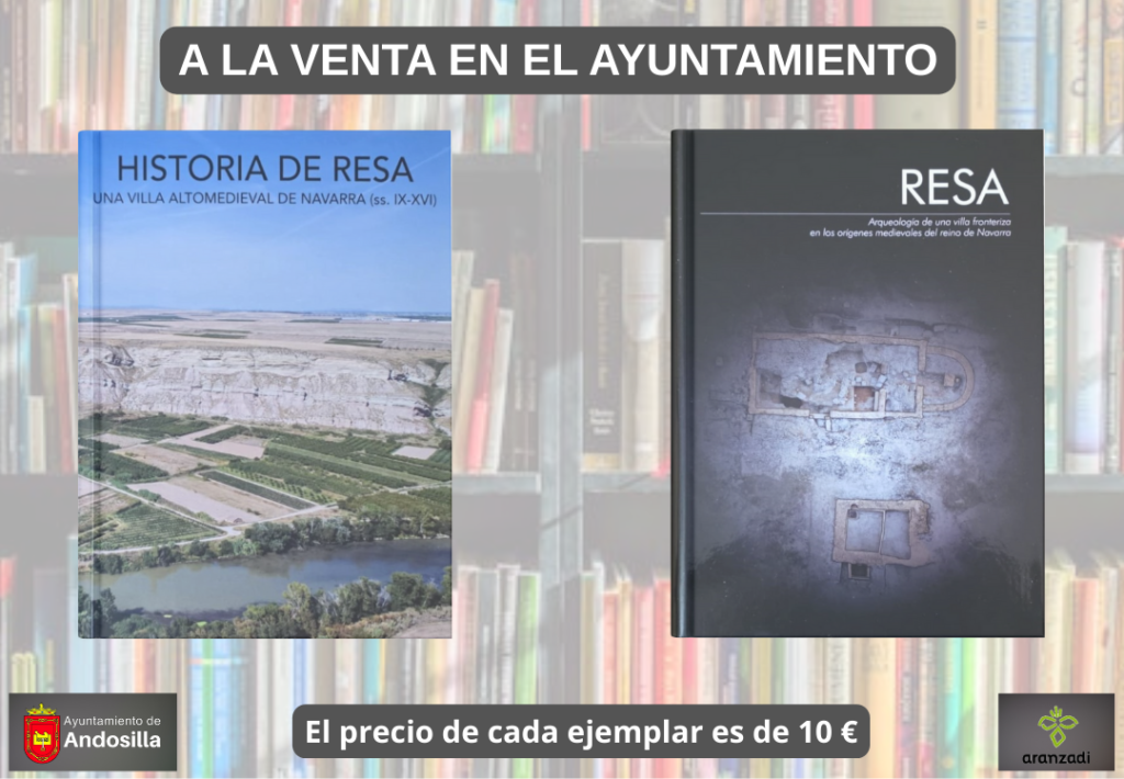 Ya están a la venta en las oficinas del ayuntamiento: “Historia de Resa” y «Resa: Arqueología de una villa fronteriza en los orígenes medievales del reino de Navarra». Dos libros esenciales para entender nuestra historia. Y si te apellidas «Resano», te van a gustar todavía más porque descubrirás cómo era el pueblo de tus antepasados. De aquí vienes y de aquí procede tu apellido.
