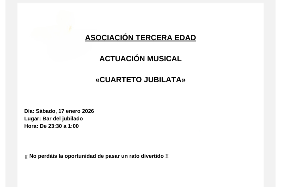 Ene132026Fiestas Categoría: FiestasPor Carlos Resaenero 13, 2026Navegación entre publicacionesAnteriorPublicación anterior:Concentración de txistularis / Txistularien kontzentrazioaSiguientePublicación siguiente:DNI´s y PasaportesNoticias relacionadasYa está aquí la tradicional comida de Fiestas de Enero de Herriko Gazteakenero 7, 2026Fiestas en Honor a San Sebastián 2026: Del 16 al 20 de eneroenero 7, 2026Subasta para la adjudicación del servicio de barra de bar para las fiestas de enero 2026octubre 31, 2025Comunicado del Ayuntamiento: Fiestas de San Sebastián 2026octubre 7, 2025Mañana es el gran díaseptiembre 6, 2025Programación especial de las fiestas de Andosilla 2025 en 30tvseptiembre 6, 2025
