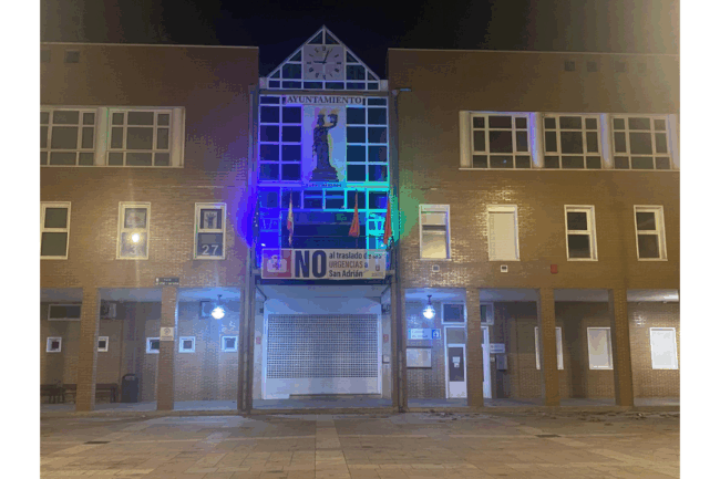 La fachada del ayuntamiento se iluminó anoche con luces verdes y azules para conmemorar el «Día Mundial de la Retina».
