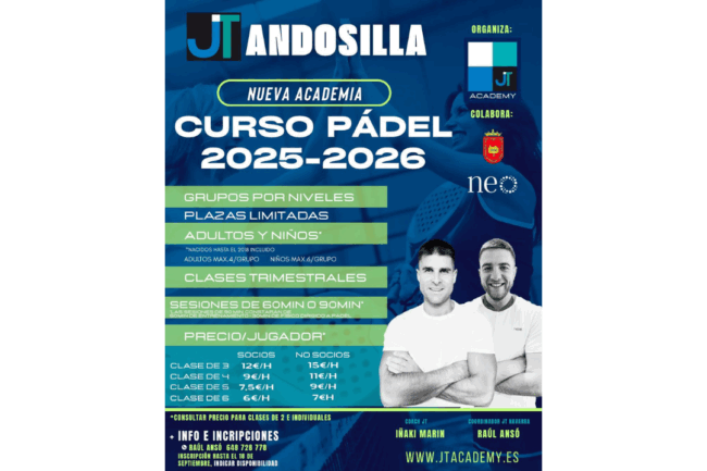 Desde NEO Instalaciones Deportivas han preparado una programación de actividades para este nuevo curso 2025-2026, incluyendo diferentes tipos de actividades. La última propuesta es la de pádel y necesitan tu ayuda para valorar esta oferta. A través de un formulario quieren conocer tu interés en participar en esta actividad. Enlace al formulario AQUÍ.