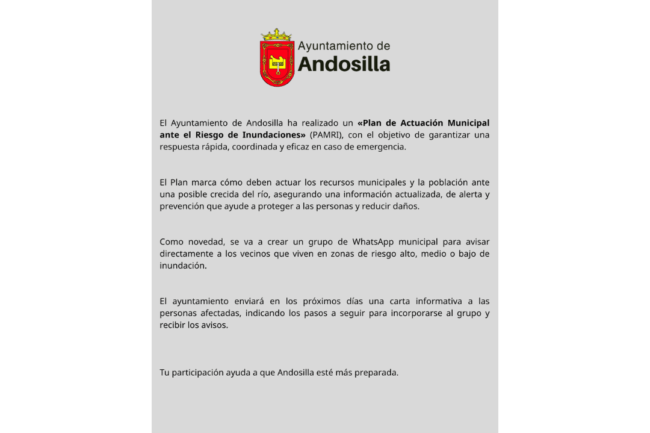 Comunicado del Ayuntamiento: «Plan de Actuación Municipal ante el Riesgo de Inundaciones» ComunicadosPor Carlos Resaoctubre 7, 2025