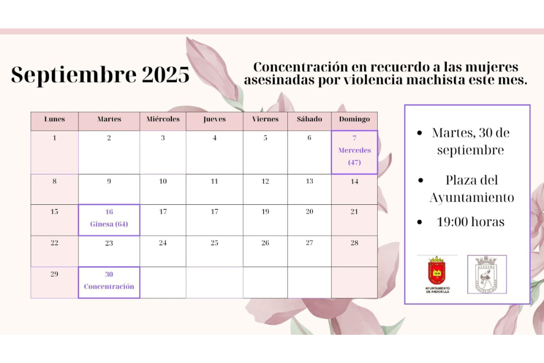Sep292025Concentraciones Categoría: ConcentracionesPor Carlos Resaseptiembre 29, 2025Navegación entre publicacionesAnteriorPublicación anterior:La fachada del ayuntamiento iluminada con luces verdes y azulesSiguientePublicación siguiente:Actividades octubre 2025Noticias relacionadasConcentración: En recuerdo a las mujeres asesinadas por violencia machistadiciembre 23, 2025Concentración en recuerdo a las mujeres asesinadas por la violencia machista este mesnoviembre 28, 2025Concentración en recuerdo a las mujeres asesinadas por la violencia machistaoctubre 29, 2025Concentración en recuerdo de las mujeres asesinadas por violencia machista este mesjulio 31, 2025Concentración en recuerdo a las mujeres asesinadas por violencia machista este mesabril 29, 2025Concentración en recuerdo a la mujeres asesinadas por violencia machista este mesmarzo 28, 2025