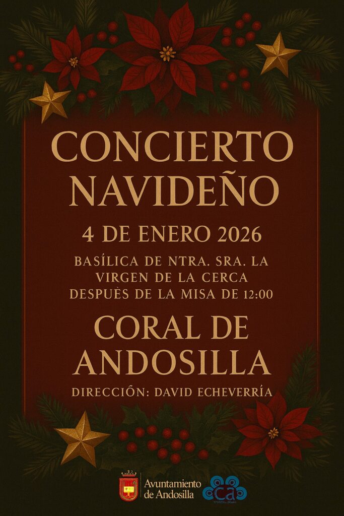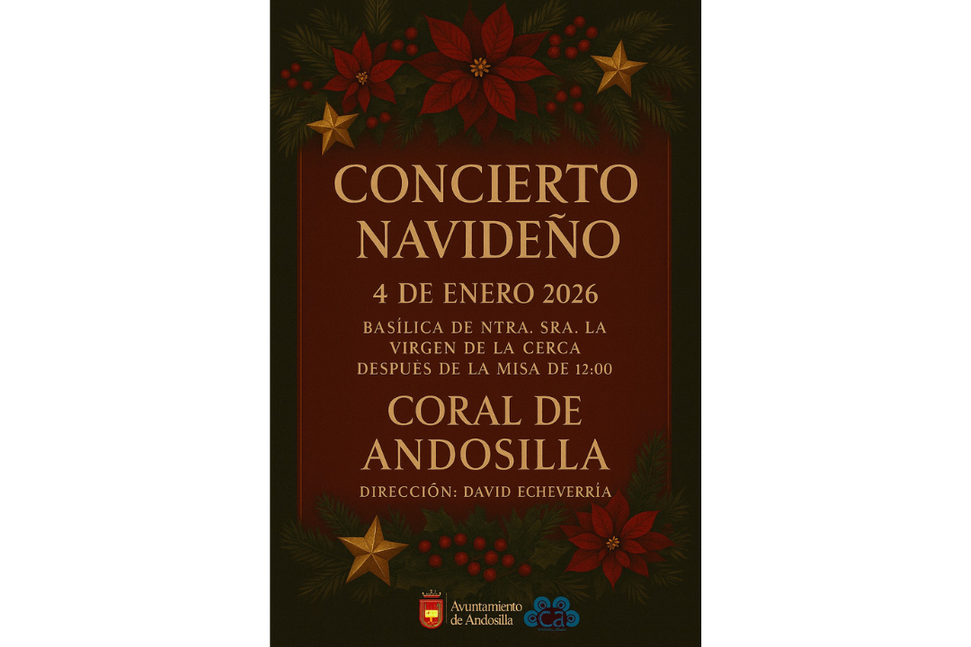 Ene22026Navidad Categoría: NavidadPor Carlos Resaenero 2, 2026Navegación entre publicacionesAnteriorPublicación anterior:Feliz Año Nuevo 2026SiguientePublicación siguiente:Cabalgata de los Reyes MagosNoticias relacionadasResultados del concurso de decoración navideña de balcones y fachadas 2025enero 8, 2026Número ganador de la cesta de Kintos 08enero 8, 2026Cabalgata de los Reyes Magosenero 2, 2026Ronda de villancicos con la Banda Municipaldiciembre 28, 2025Cabalgata de Papá Noel, Olentzero y Mari Domingidiciembre 23, 2025¡Feliz Navidad andolenses!diciembre 19, 2025