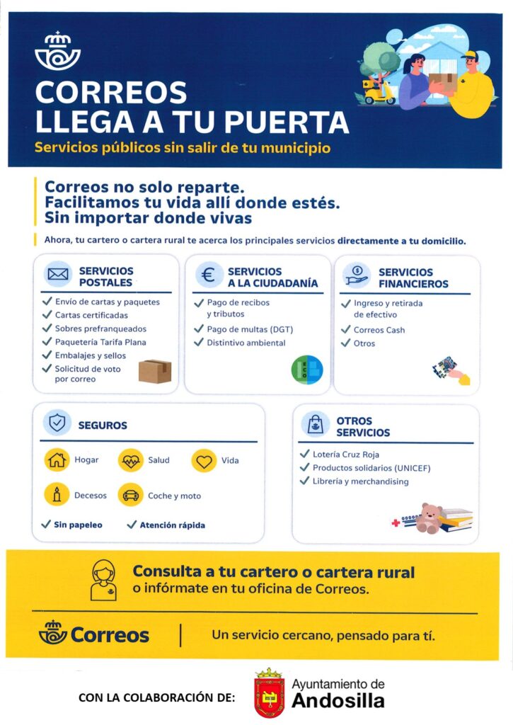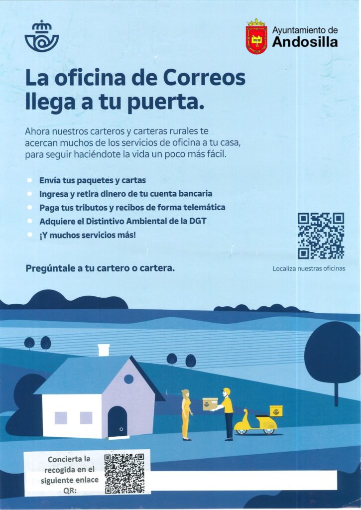 Ahora el cartero puede ayudarte con envíos de cartas y paquetes, gestiones bancarias, pago de recibos y otros servicios, sin ir a la oficina. Solo tienes que preguntarle al cartero cuando pase por tu barrio. También puedes consultar oficinas.