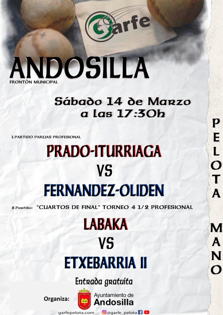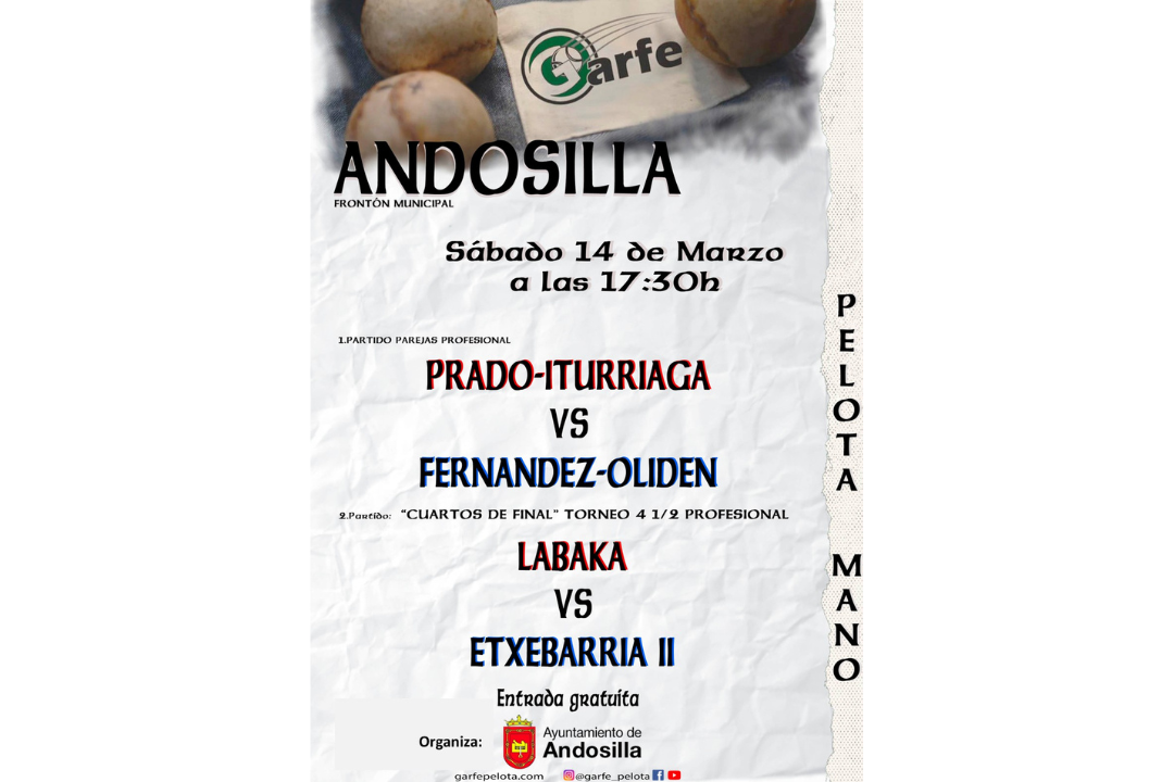 Mar102026Deportes Category: DeportesBy Carlos Resamarzo 10, 2026Post navigationPreviousPrevious post:Frontón municipal: pelota vascaNoticias relacionadasFrontón municipal: pelota vascamarzo 10, 2026VI Trail «Peña de Andosilla»: Inscripcionesfebrero 19, 2026Andosilla Korrika 2026febrero 9, 2026III edición: Premiamos tu actividad física. Del 1 de marzo al 30 de junio, 2026febrero 6, 2026Actividades polideportivo municipalfebrero 5, 20261ª Edición Torneo Pádel 24h: Cuadro de honorenero 7, 2026