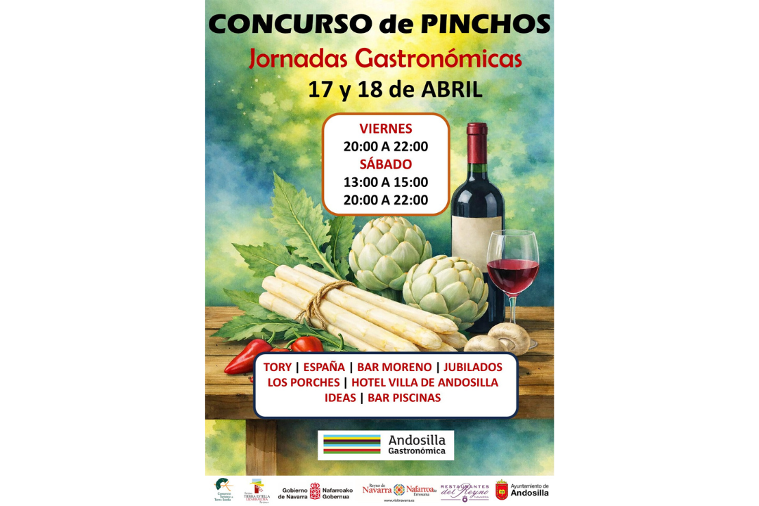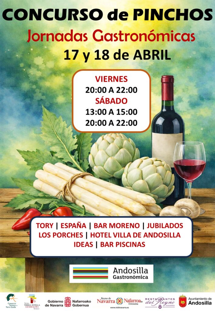 Abr142026Gastronomica Category: GastronomicaBy Carlos Resaabril 14, 2026Post navigationPreviousPrevious post:Presentación libro «Más allá del dolor: camino a la supervivencia»NextNext post:Día de la Comparsa / Gartxot EgunaNoticias relacionadasHoy, 17 de abril, grabación de un reportaje para el programa «Aquí la Tierra»abril 17, 2026Programación Andosilla Gastronómica 2026abril 7, 2026Jornadas Gastronómicas: Concurso de pinchosmayo 7, 2025